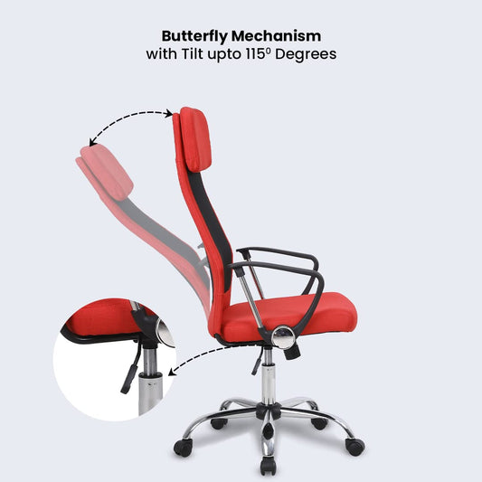 Zenith Ergonomic High back chair for Home, Office, Study table with Recline|Height adjustable cushion seat with headrest (Grey) (Red)