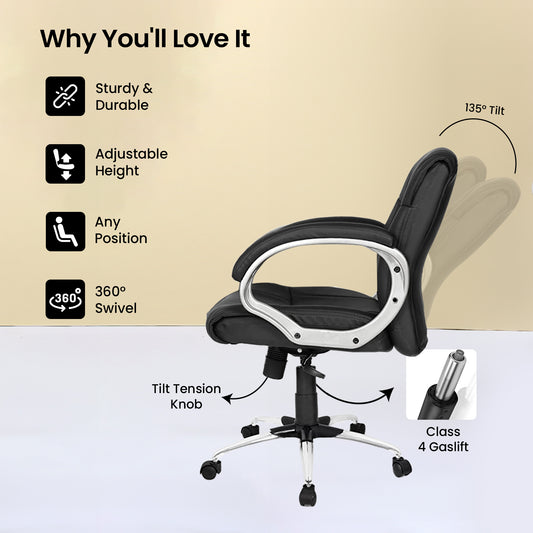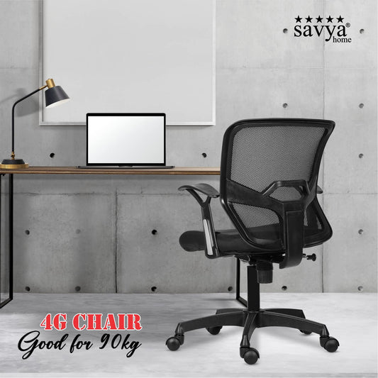 ® 4th Gen Mid-Back Ergonomic Revolving Mesh Chair for Office,Work from Home & Study withTilt Lock Mechanism, Pneumatic Seat Height Adjustment, T-Type Armrest(Qty-1, Black)