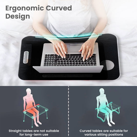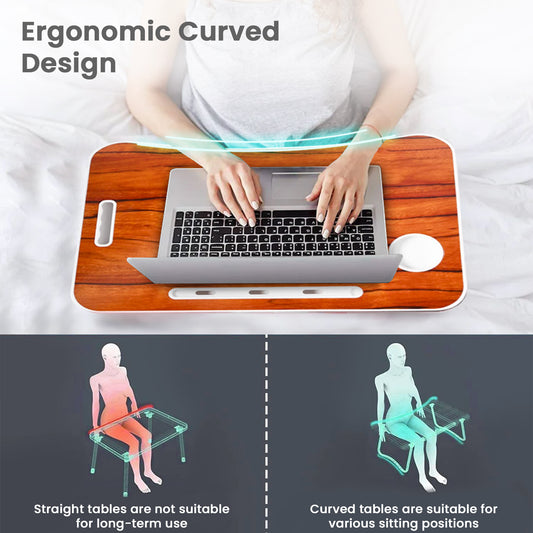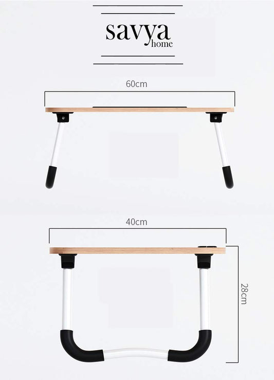 Savya home® Multi-Purpose New Laptop Table/Bed Table/Wooden Foldable Bed Table/LAPDESK/Study Table/Portable Table (Black Silver) (Black-White) (Light Brown)