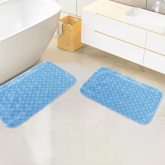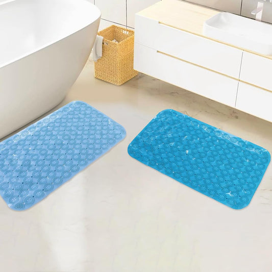 Anti Skid Bath Mat for Bathroom, Mat for Kitchen, Mat for Shower area, Bathtub Mats|PVC Bath Mat with Suction Cup, Machine Washable Floor Mat (67x37 cm)| Light Blue & Blue