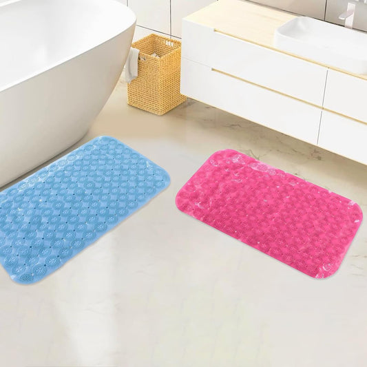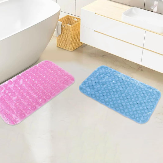 Anti Skid Bath Mat for Bathroom, Mat for Kitchen, Mat for Shower area, Bathtub Mats|PVC Bath Mat with Suction Cup, Machine Washable Floor Mat (67x37 cm)| Blue & Pink