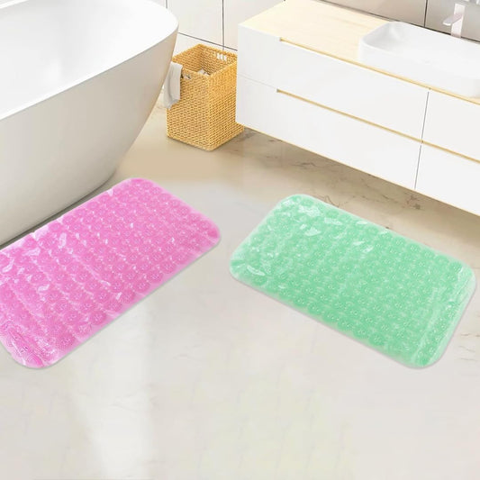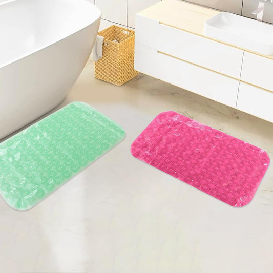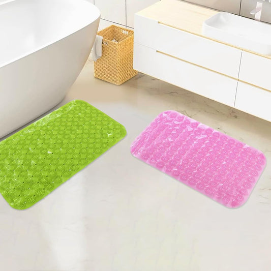 Anti Skid Bath Mat for Bathroom, Mat for Kitchen, Mat for Shower area, Bathtub Mats|PVC Bath Mat with Suction Cup, Machine Washable Floor Mat (67x37 cm)| Light Green & Pink
