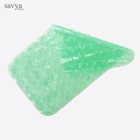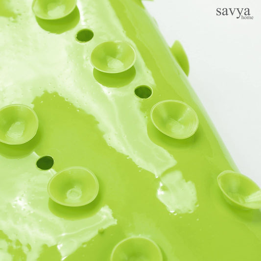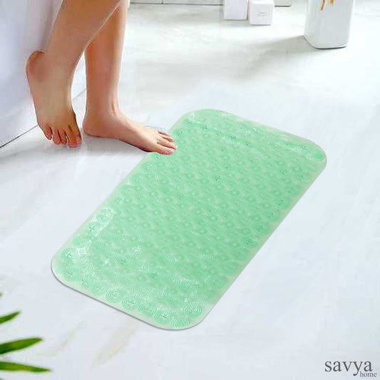 Savya Home Anti Skid Bath Mat for Bathroom, Mat for Kitchen, Mat for Shower area, Bathtub Mats| PVC Bath Mat with Suction Cup, Machine Washable Floor Mat (67x37 cm) (Green)