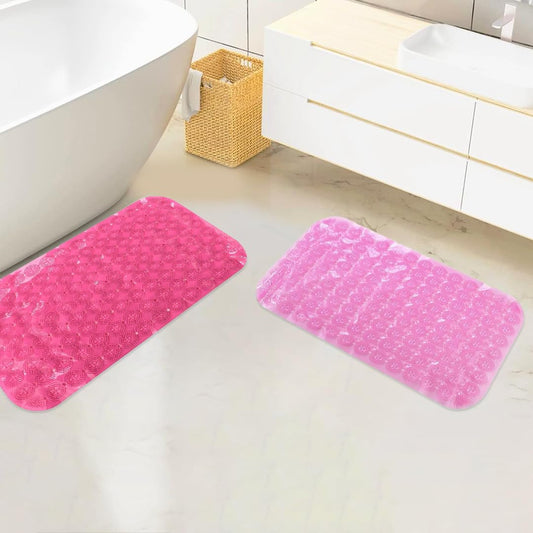 Savya Home Anti Skid Bath Mat for Bathroom, Mat for Kitchen, Mat for Shower area, Bathtub Mats| PVC Bath Mat with Suction Cup, Machine Washable Floor Mat (67x37 cm)| Pink & Light Pink
