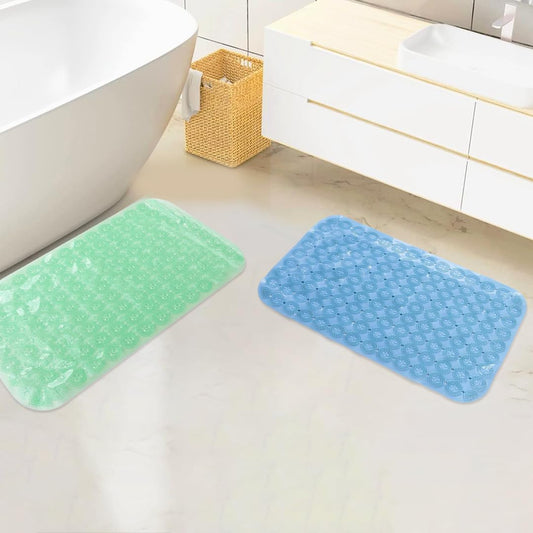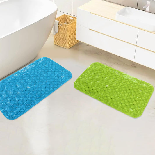 Anti Skid Bath Mat for Bathroom, Mat for Kitchen, Mat for Shower area, Bathtub Mats |PVC Bath Mat with Suction Cup, Machine Washable Floor Mat (67x37 cm)| Light Green & Light Blue