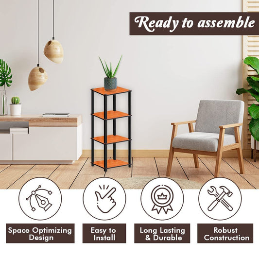 SAVYA Home 4-Tier Turn and Table | Durable & Sturdy Engineered Wood | Side Table for Living Room | Ready to Assemble | 1 Piece | Teak Natural