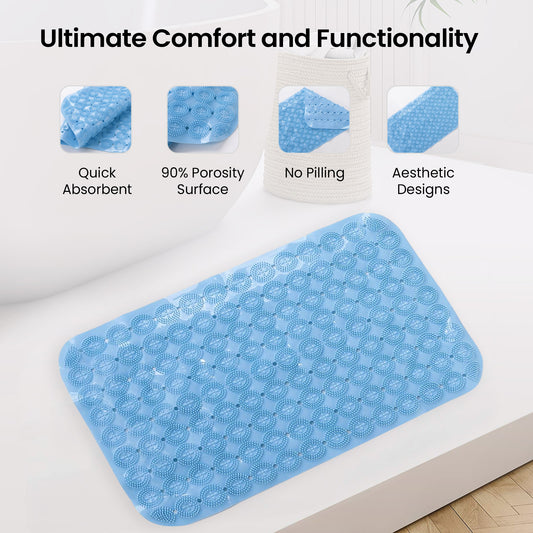 Anti Skid Bath Mat for Bathroom, Mat for Kitchen, Mat for Shower area, Bathtub Mats| Bath Mat, Machine Washable Floor Mat (67x37 cm)| Light Blue & Light Blue
