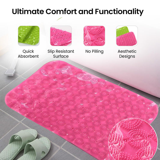 Savya Home Anti Skid Mat for Bathroom Floor (67x37 Cm) Pack of 2 | Shower Mats| Rubber Mat | Bathroom Mats Water Soak | Bathroom Accessories for Home