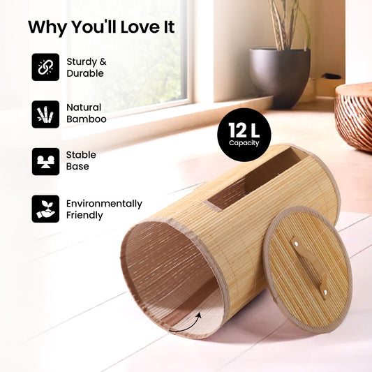 Bamboo Basket for Storage (12L-25*3*41cm) Laundry Basket for Clothes With Lid | Home Organizer Items and Storage | Eco Friendly | Compact and Easy to carry | Home Storage Organizer | BrownRegular price ₹ 1,299Sale price ₹ 1,299 Regular priceUnit price / per₹ 1,299