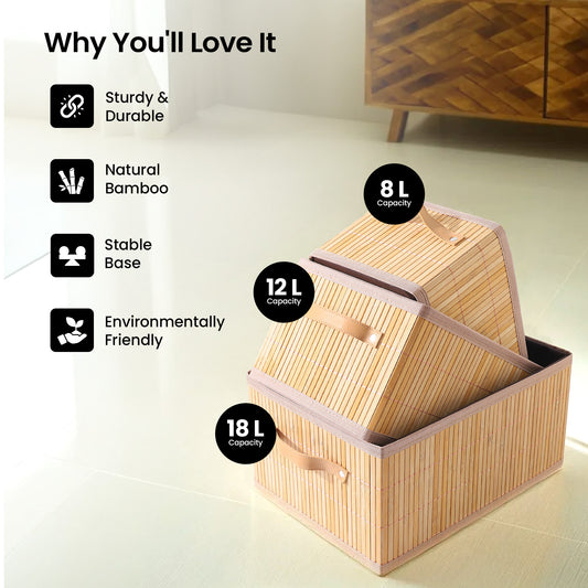 Bamboo Basket for Storage (3Pcs-8L,12L & 18L) Laundry Basket for Clothes With Lid Home Organizer Items Eco Friendly | Compact and Easy to carry | Home Storage Organizer | BrownRegular price ₹ 3,299Sale price ₹ 3,299 Regular priceUnit price / per₹ 3,299Sold out
