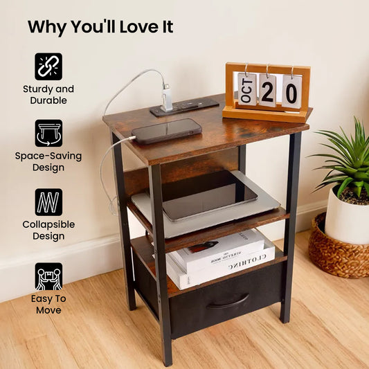 Savya Home Bed Side Table - Wooden Design with Drawer & Socket | 40x30x60cm | BrownRegular price ₹ 5,591Sale price ₹ 5,591 Regular priceUnit price / per₹ 11,349(50% off)Sold out
