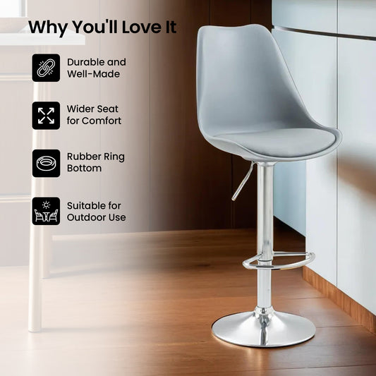 Curvy Bar Stool/Chair for Kitchen/Home - Rubber Ring Bottom, Chromed Steel Base, Circular Footrest - GreyRegular price ₹ 8,399Sale price ₹ 8,399 Regular priceUnit price / per₹ 8,399Sold out