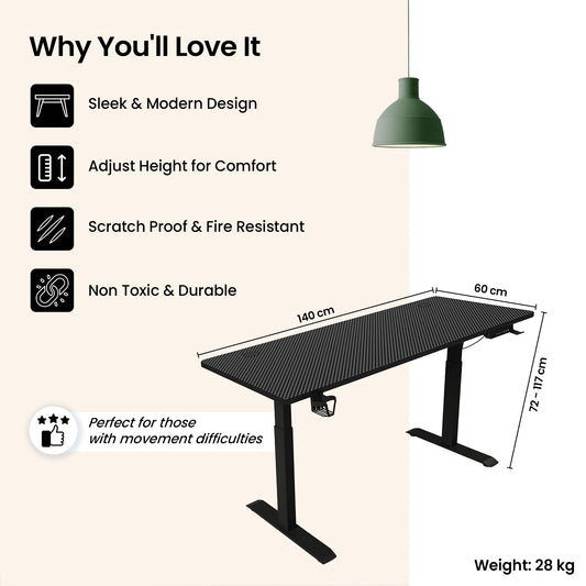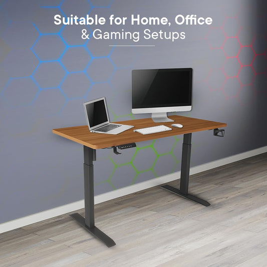 Savya Home Multipurpose Electric Height Adjustable Office Desk, Standing Desk,Digital Display with Memory Preset Option,Cup Holder & Headphone Hook| Gaming Desk,Study Table (140*60*(72-117) cm, Black