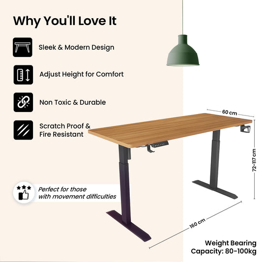 Multipurpose Electric Height Adj. Engineered Wood Table Desk, Ergonomic Sit-Stand Desk, Digital Display with Memory Preset Option, Cup Holder & Earphone Hook (140 * 60*(72-117) cm), Walnut