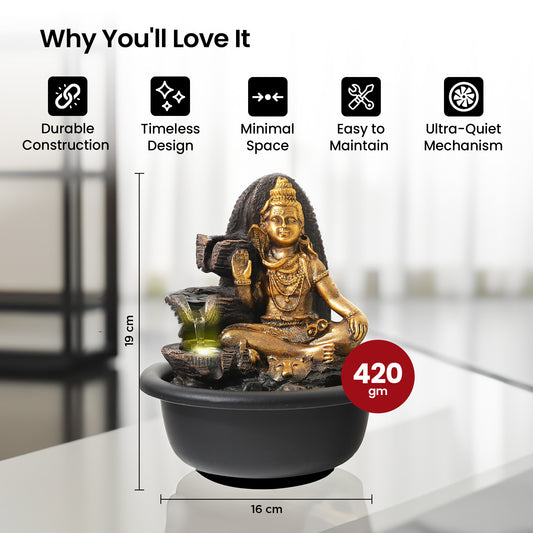 Tabletop Fountain - Polyresin Shiva with LED Lights | 16x16x19cm | Grey