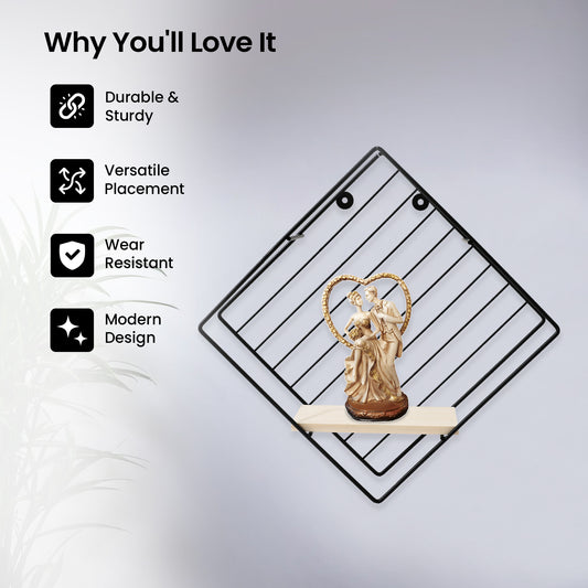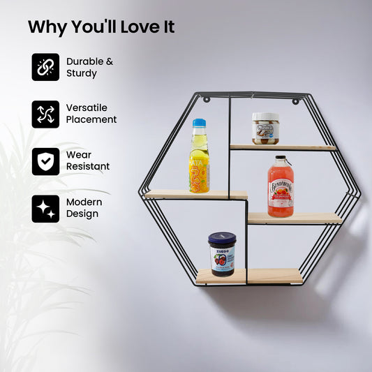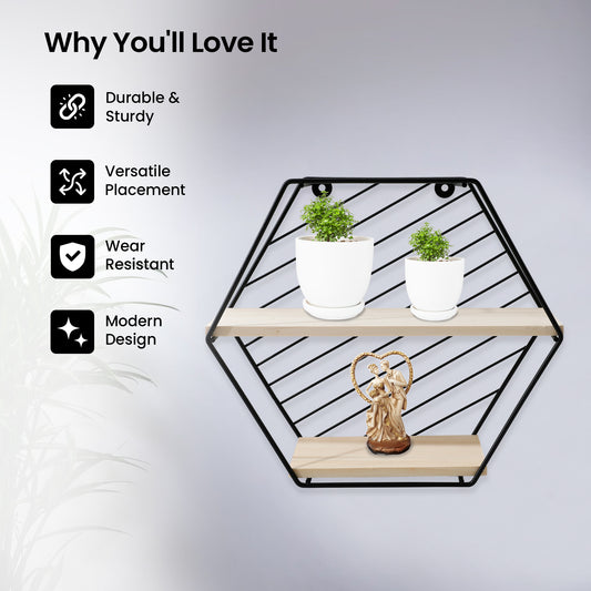Hexagonal Wall Shelf - Stylish Design, Durable | Wall Mounted | 24x8 Inches | Black