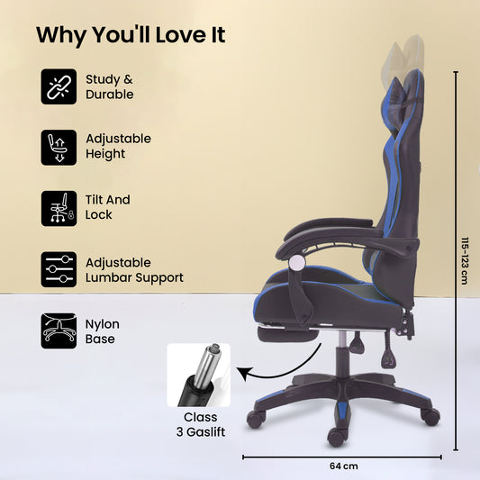 Snipe Gaming Chair with Adjustable Headrest & Lumbar Support,135° Recliner Chair| Stretchable Armrest with Footrest,Computer Chair, Apex Crusader Gaming Chair Series (Sniper Blue)
