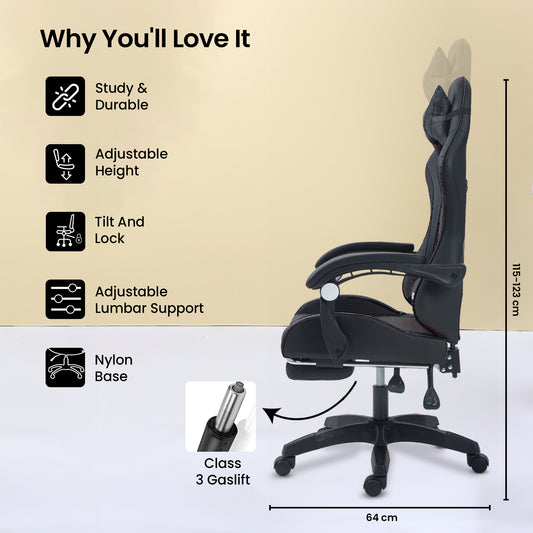 Savya Home Snipe Office/Gaming Chair with Adjustable Headrest & Lumbar Support, 135° Recliner Chair | Stretchable Armrest, Comfortable Footrest, Multifunctional Chair (Black) |Apex Crusader Chair Series, Black
