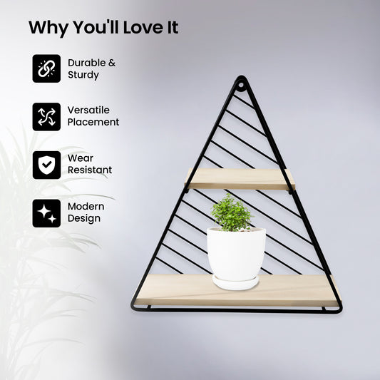 Triangular Hanging Wall Shelf/Wall Shelves/Wall Mounted Shelf/Home Decoration/Wall Shelf for Bedroom/Interior Decoration Items/Metal Decorative Rack/Pinewood/White-27x9.5x27 cm