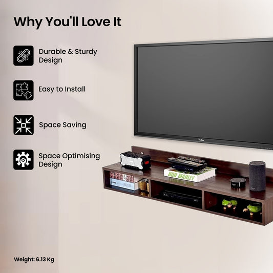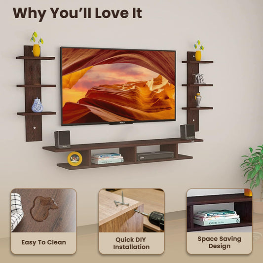 Wall Mount Tv Entertainment Unit/with Set Top Box Stand and Wall Shelf Display Rack Two Box for Life Room (Ideal for Up to 55") Screen(Engineered Wood)