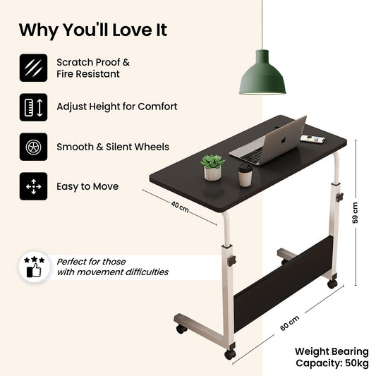 Multipurpose Manual Height Adjustable, Movable Desk with Wheels for Home, Office, Couch, Bedside Table (Black)