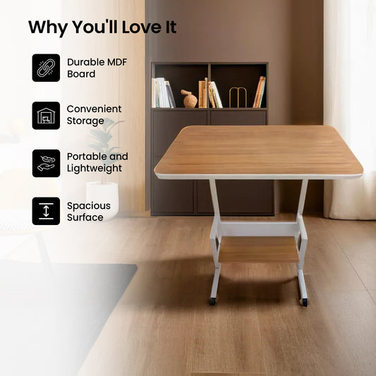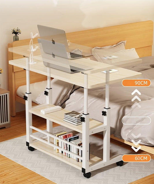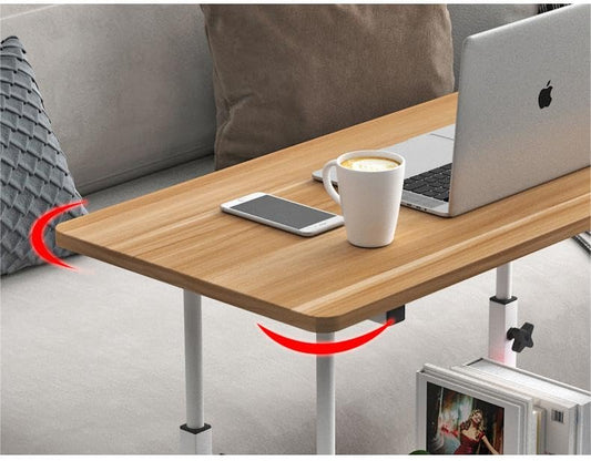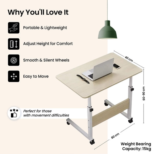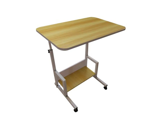 Multipurpose Manual Height Adjustable, Movable Desk, Study Table, Work Table with Wheels for Home, Office, Couch, Bedside Table (Maple)