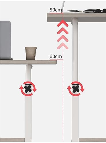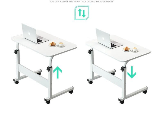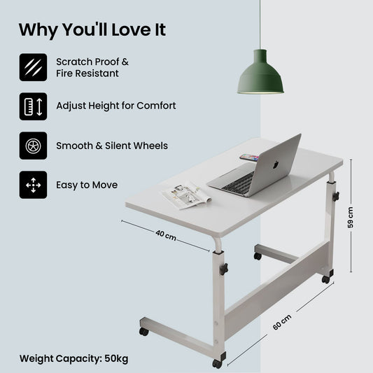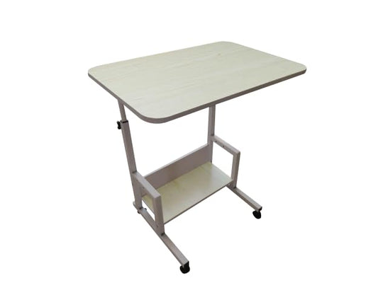 Multipurpose Manual Height Adjustable, Movable Desk, Study Table, Work Table with Wheels for Home, Office, Couch, Bedside Table (White)