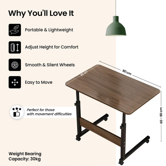 Multipurpose Manual Height Adjustable, Movable Desk, Study Table, Work Table with Wheels for Home, Office, Couch, Bedside Table (Walnut)