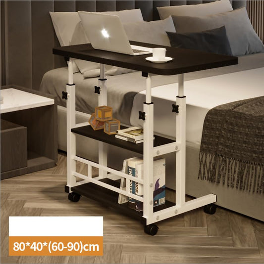 Multipurpose Manual Height Adjustable Desk, Movable Desk, Study Table, Work Table with Wheels for Home, Office, Couch, Bedside Table (Black)