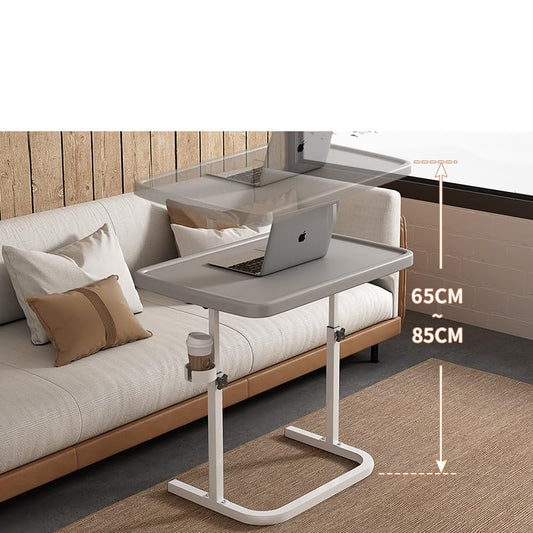 Multipurpose Manual Height Adjustable Desk for Home, Office, Room, Bedside, Couch with Cup Holder|PP Panel with Carbon Steel Frame with Cup Holder & Adjustable Table Top (Grey)